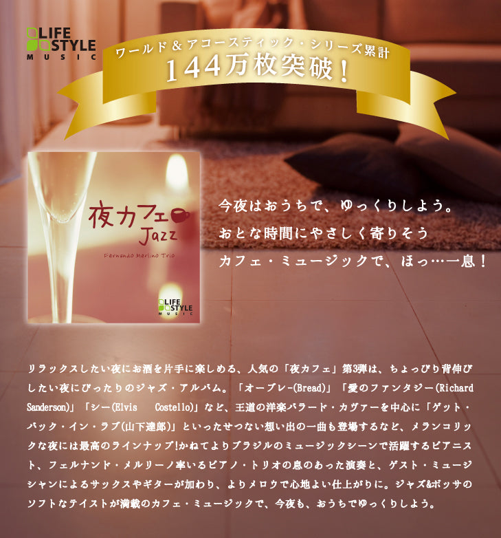 リラックスしたい夜にお酒を片手に楽しめる、人気の「夜カフェ」第3弾は、ちょっぴり背伸びしたい夜にぴったりのジャズ・アルバム。