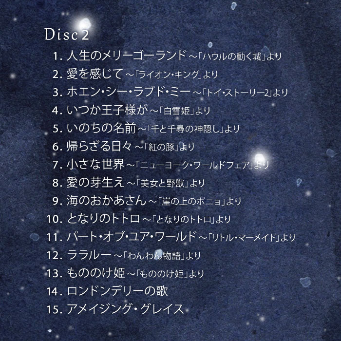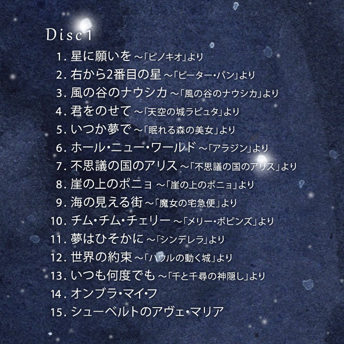 収録曲は子どもから大人まで、世代を超えて愛されるディズニー&ジブリの曲からクラシック・ミュージックまで。