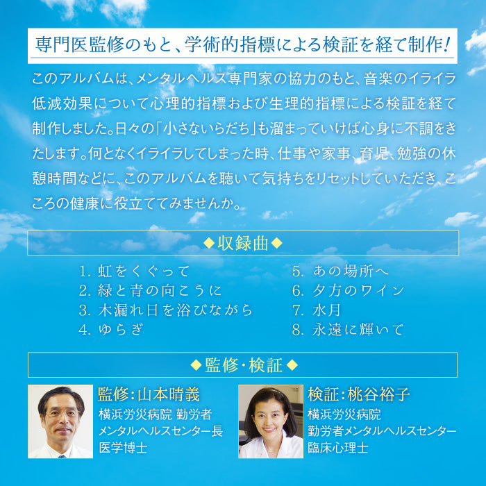 何となくイライラしてしまった時、仕事や家事、育児の合間などに、このCDを聴いて心をリセットしてみてはいかがでしょうか。