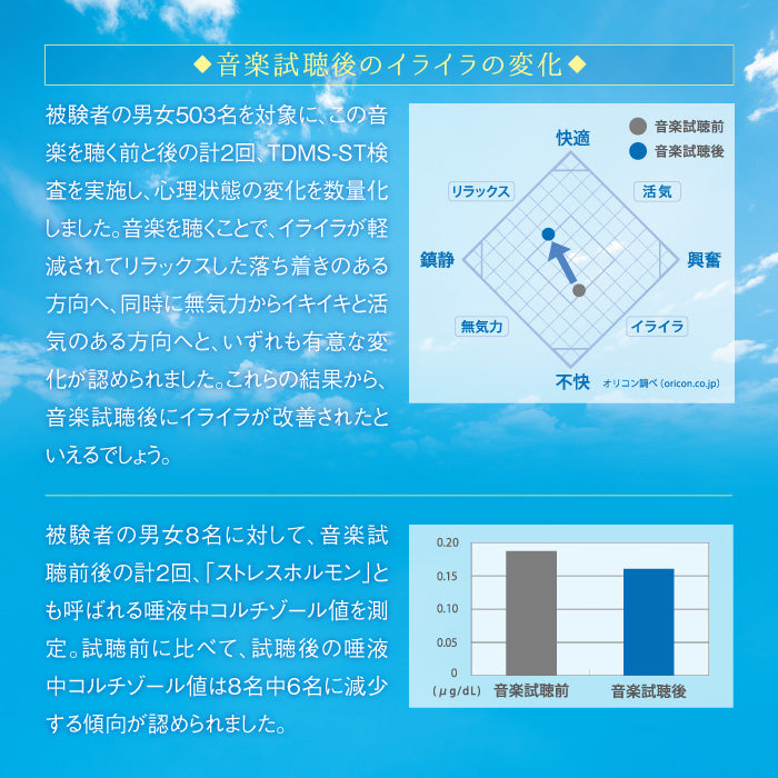 メンタルヘルス専門医監修のもと、音楽のイライラ低減効果について心理的指標および生理的指標による検証を実施。