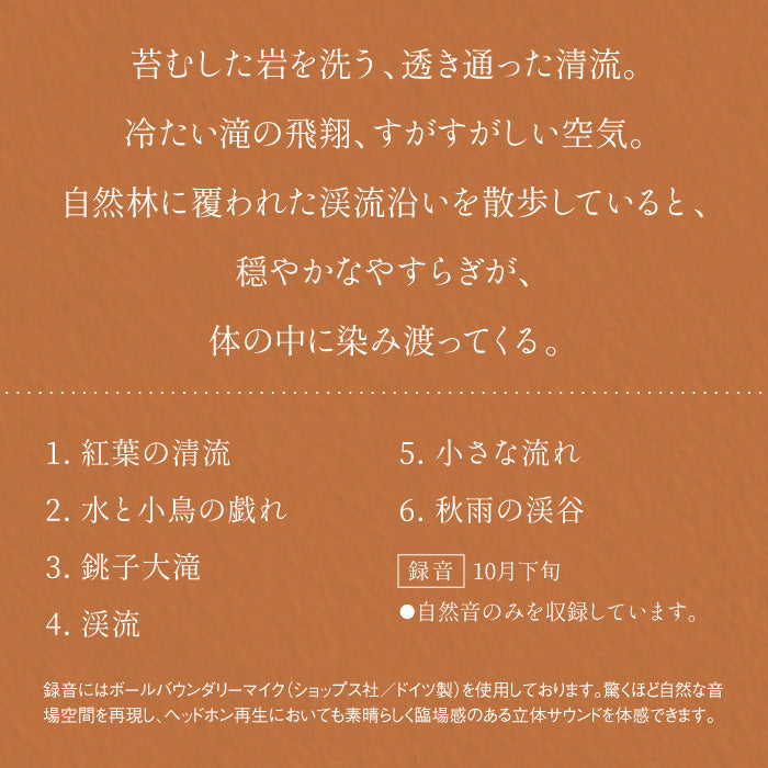 静かに目を閉じ、ひんやりと冷たい水の流れと自然が織りなす立体サウンドを体感してみませんか。
