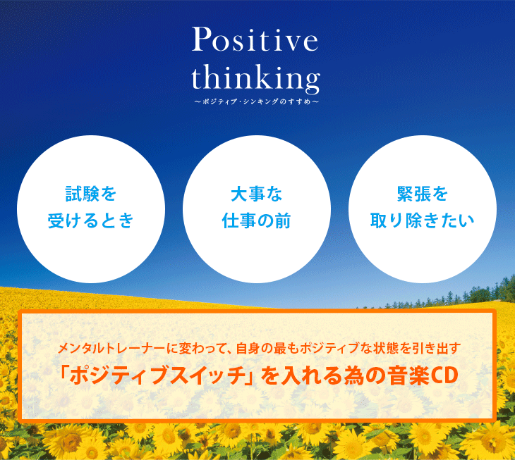 そこで、脳によい刺激を与えると考えられる音楽の力を応用して、脳に記憶された「自分自身の成功体験」や「自分らしさ」などのイメージを自在に引き出すためのメンタル・トレーニングCDを企画しました。