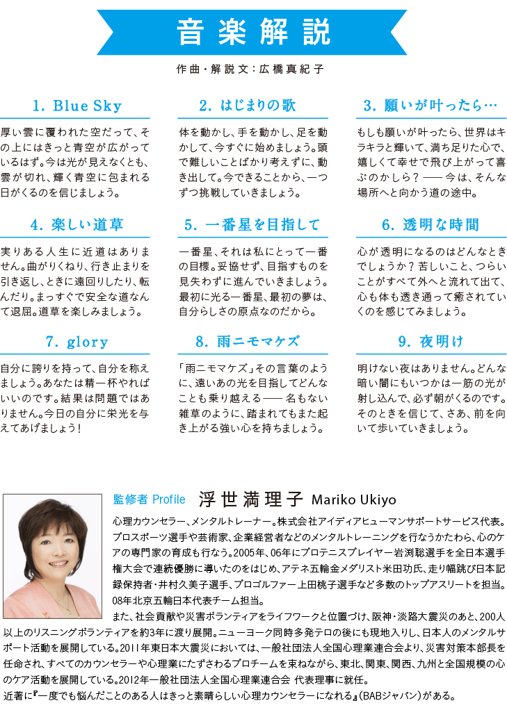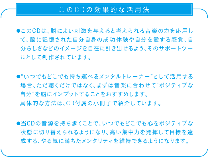 ブックレットにはCD活用法のほか、メンタルトレーナー直伝の「ポジティブな自分になるためのヒント」なども紹介。