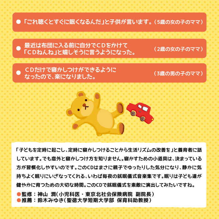 「子供がなかなか寝てくれない…」とお悩みのママに、画期的なおやすみCD🎵